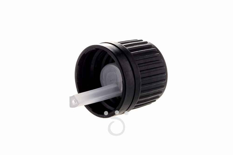 Black ribbed temper evident cap with dropper insert
